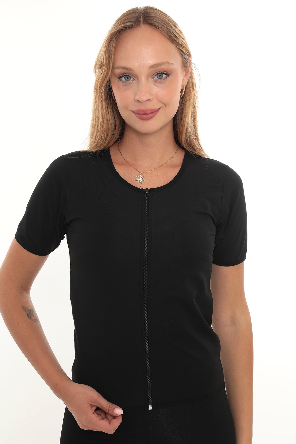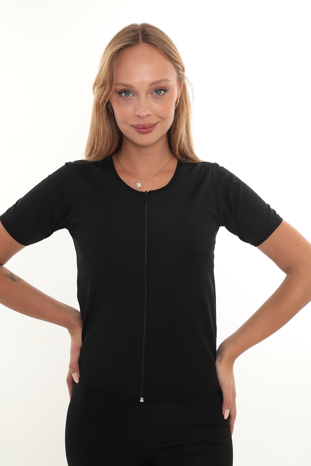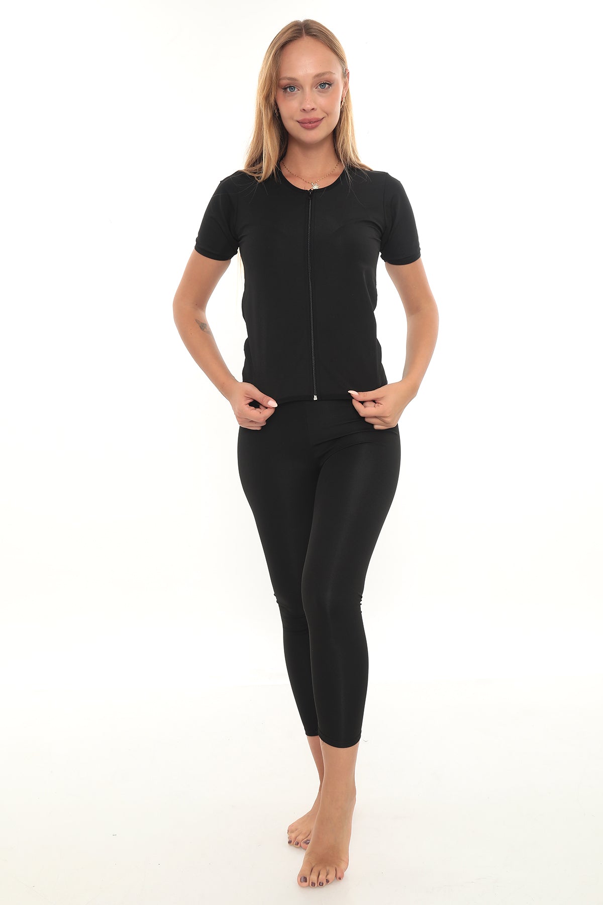 - Tam set kombin: Fermuarlı üst + toparlayıcı tayt bir arada