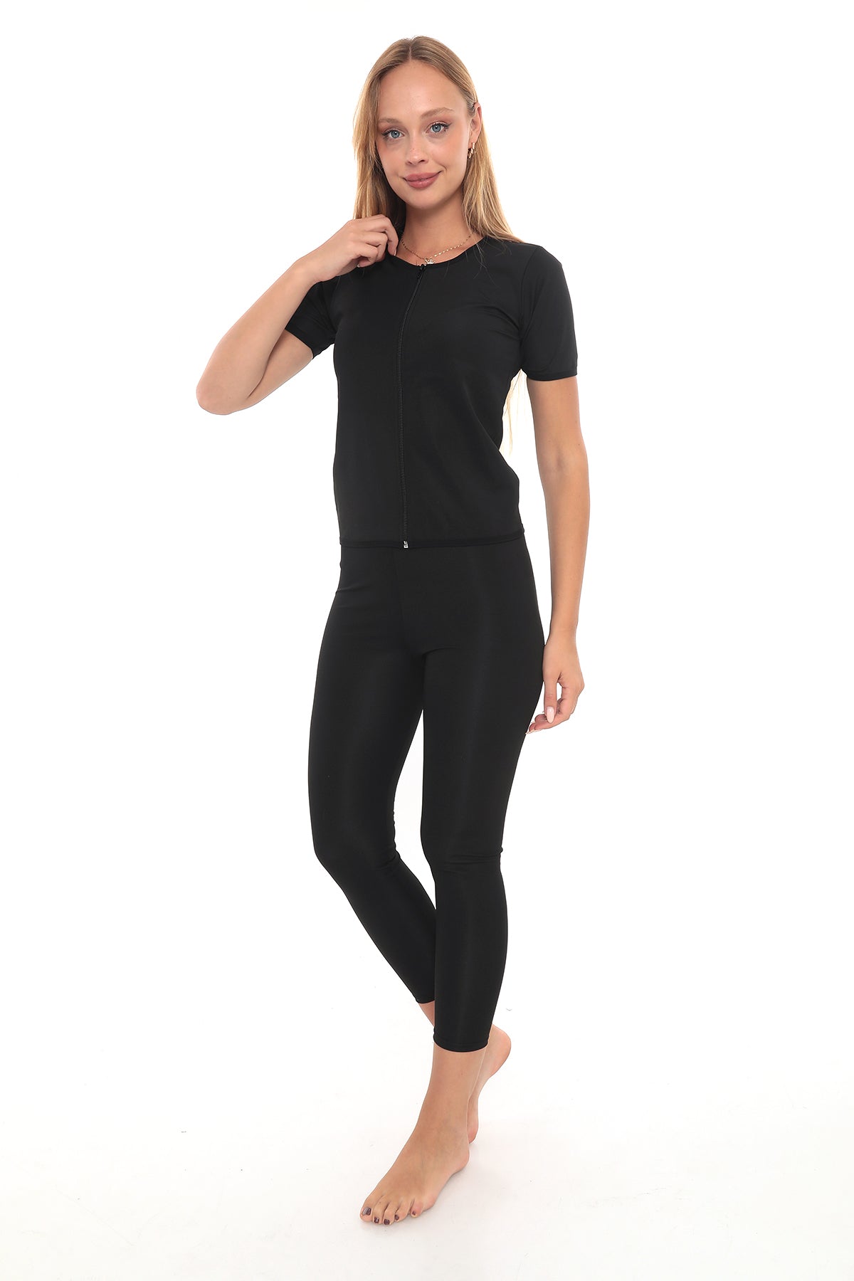HeatCore™ Sauna Takımı – Isı Destekli Kadın Tayt & Fermuarlı Üst, Spor ve Günlük Kullanım İçin
